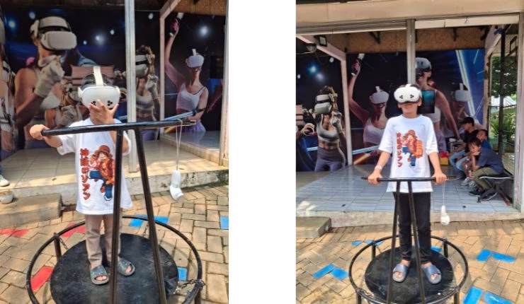 Mereka juga menjajal VR. Ada beberapa pilihan video, misalnya underwater dan animals. Saya ikut mencoba juga. Jika memilih animals, kita bisa memberi makan rumput pada hewan-hewan yang ada. Secara virtual tentunya.